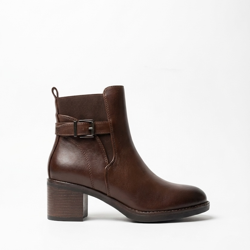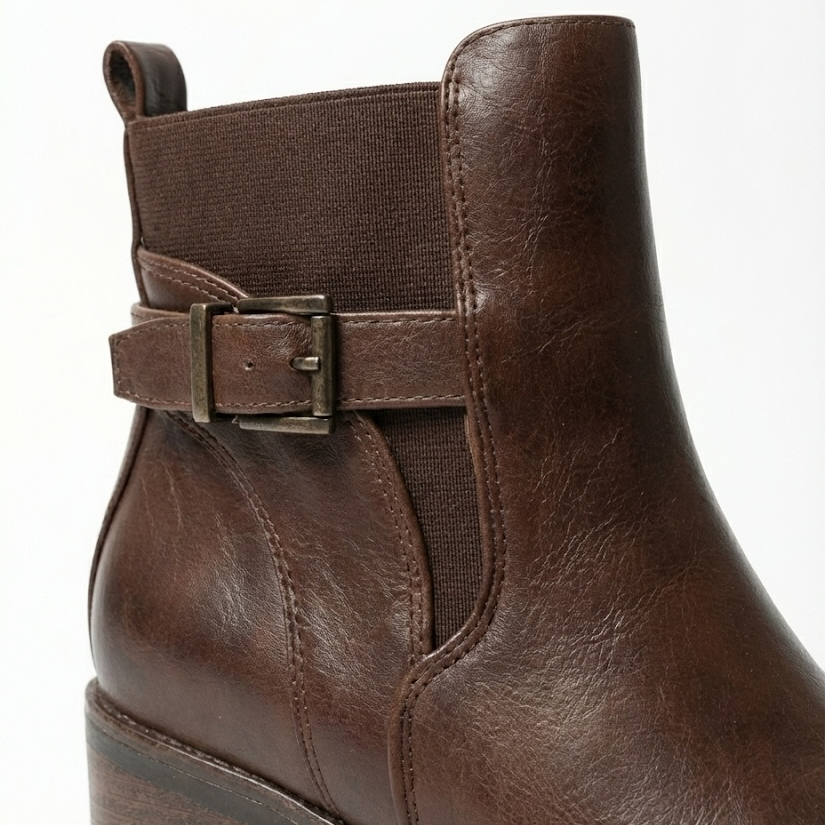 Crafted from smooth, high-quality synthetic leather. Breathable textile lining. Durable anti-slip rubber outsole. Decorative silver-tone buckle detail. Elasticated gore panels for flexible fit. Soft cushioned insole for comfort.