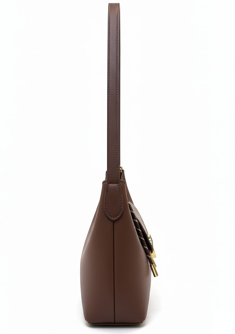 Embrace natural elegance with this beautifully crafted mini-tote. Made from rich, durable brown leather featuring a distinct woven basket-weave texture