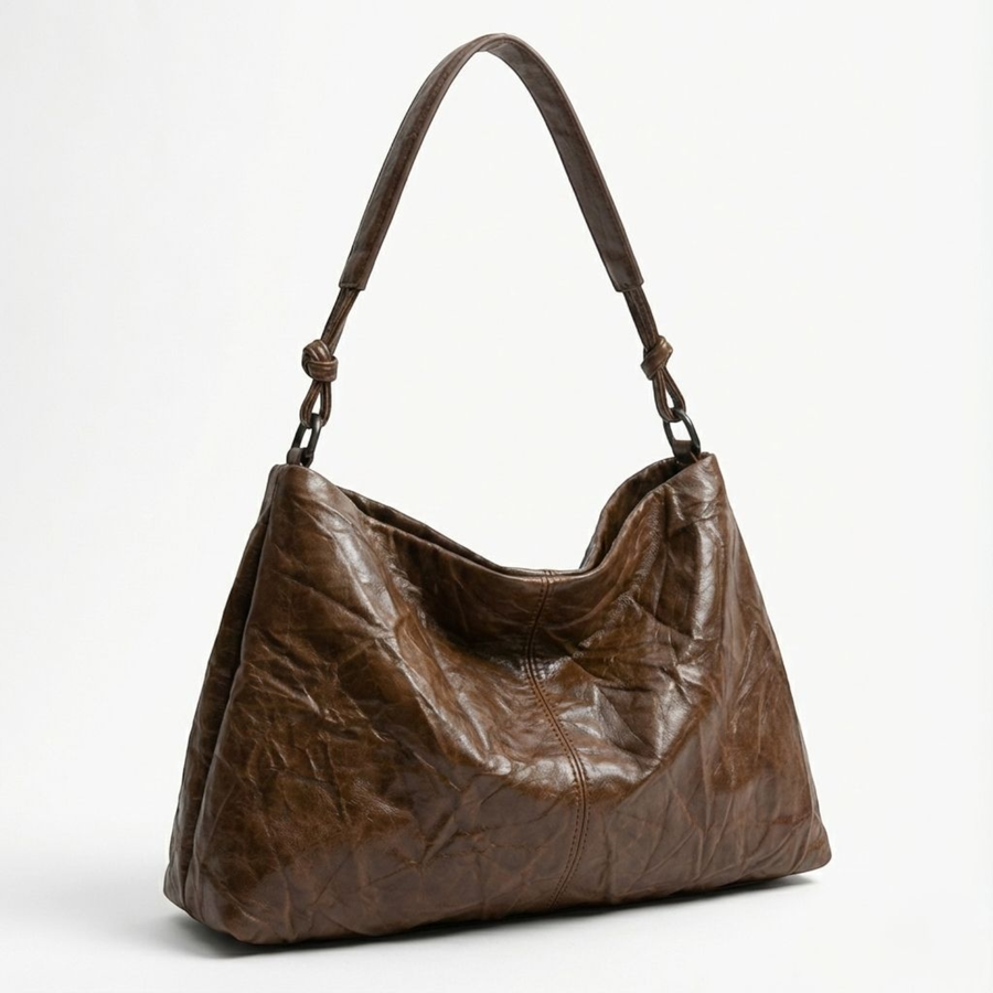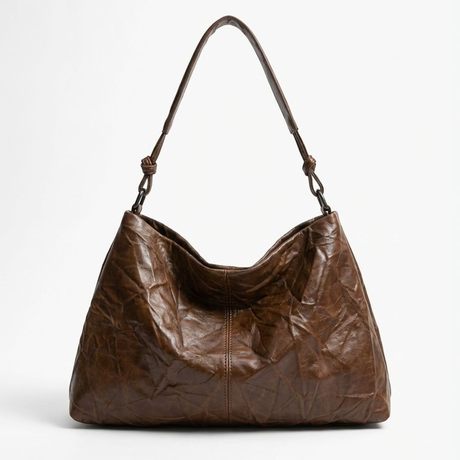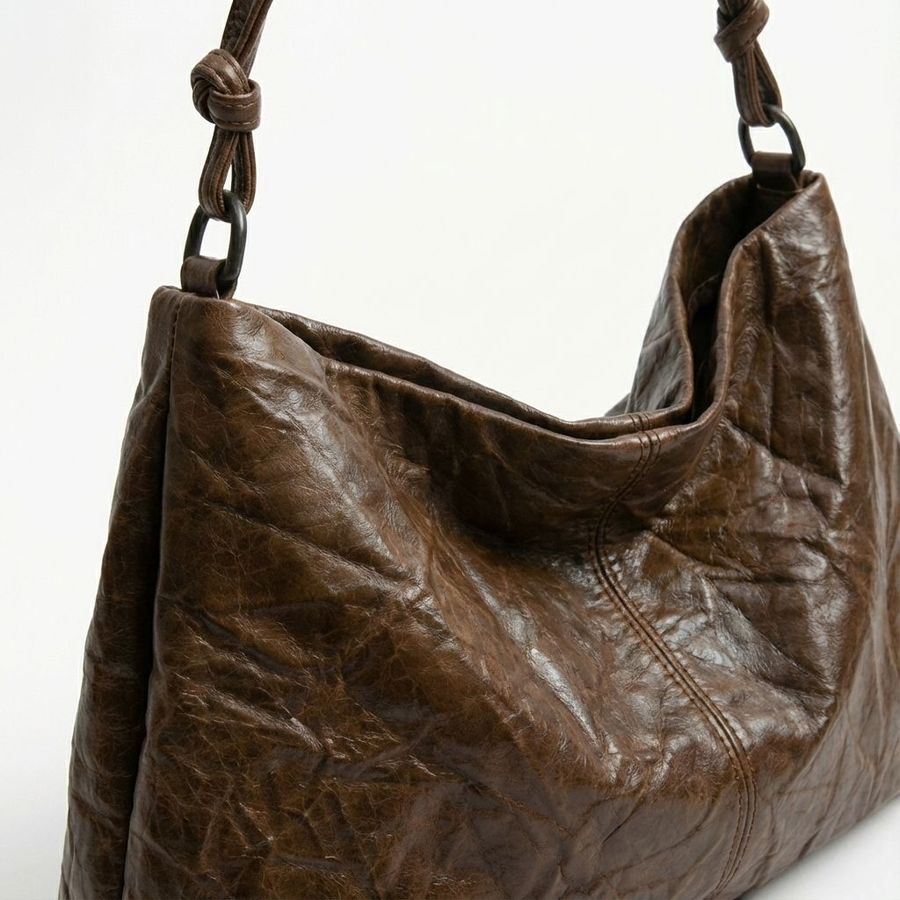 Embrace natural elegance with this beautifully crafted mini-tote. Made from rich, durable brown leather featuring a distinct woven basket-weave texture