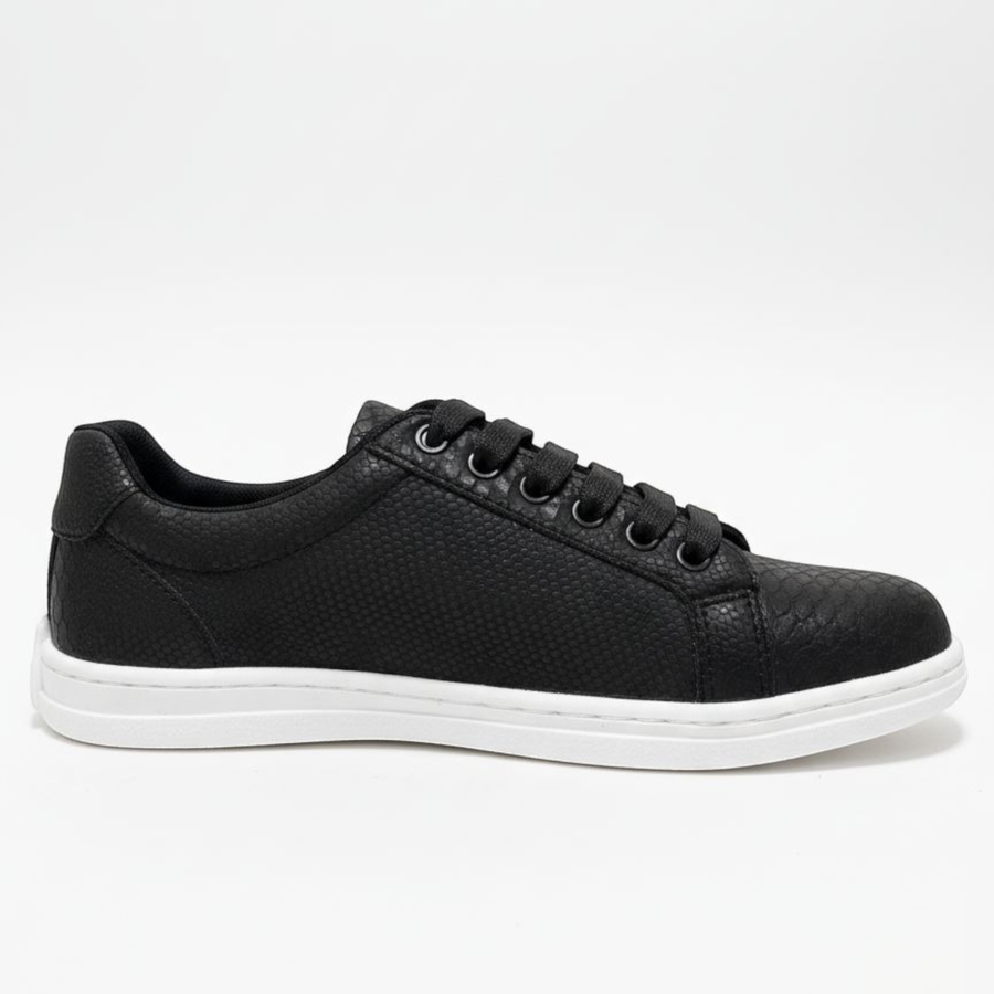 Add a touch of sparkle to your everyday style with these Black snake leather sneakers. Distinguished by dazzling black snake leather and a classic lace-up silhouette, this pair effortlessly combines sporty comfort with a glamorous twist, making them a standout choice for casual wear.