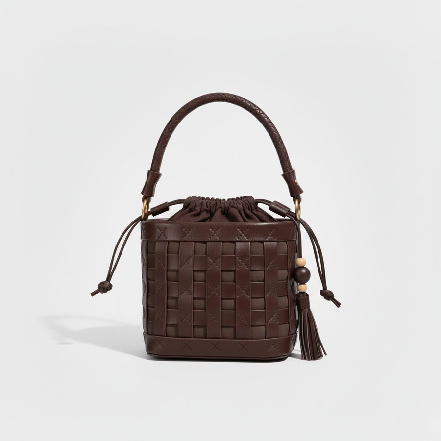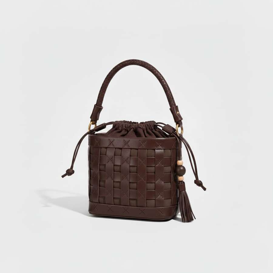 Embrace natural elegance with this beautifully crafted mini-tote. Made from rich, durable brown leather featuring a distinct woven basket-weave texture
