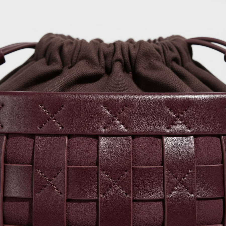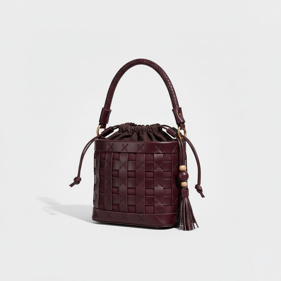 Embrace natural elegance with this beautifully crafted mini-tote. Made from rich, durable brown leather featuring a distinct woven basket-weave texture