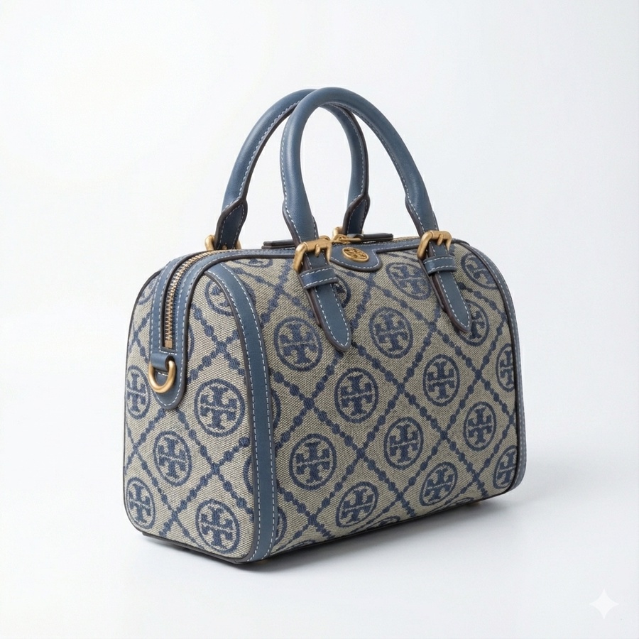 Premium Patterned Jacquard Canvas / Smooth Vegan Leather Trim / Gold-tone Hardware.