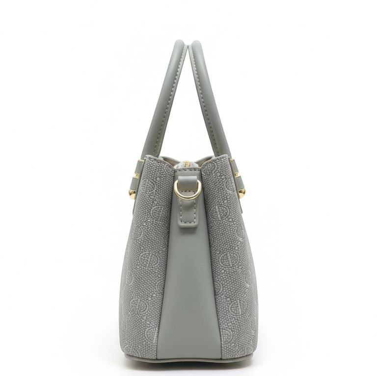 Discover the perfect balance of modern luxury and everyday utility with this exquisite grey tote bag. Crafted from high-quality textured material featuring a subtle monogram pattern, this bag offers a sophisticated finish that is durable and visually appealing. Its structured, classic silhouette is accentuated by a smooth leather-effect top panel and signature gold-tone branding, adding a refined high-end touch.