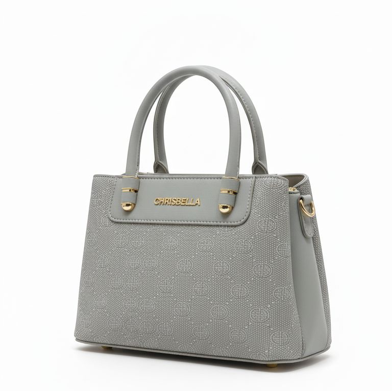 Accents: Gold-tone "CHRISBELLA" logo lettering and metal handle studs.