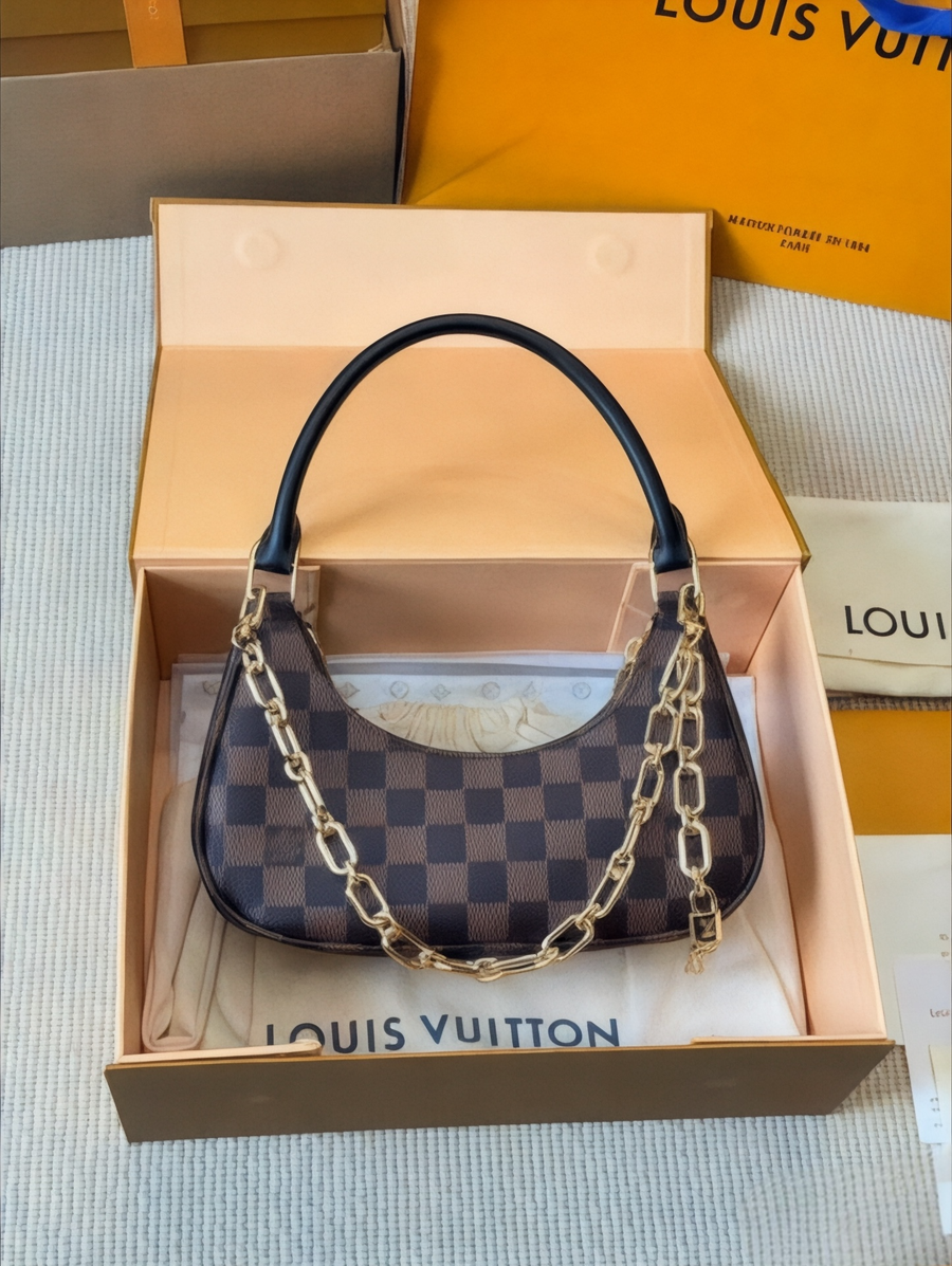 The Louis Vuitton Croissant bag in iconic Damier Ébène canvas embodies effortless chic, making it a luxurious staple for any collection.