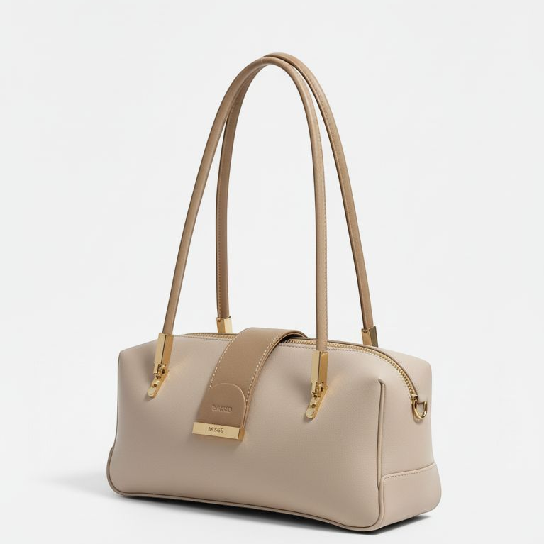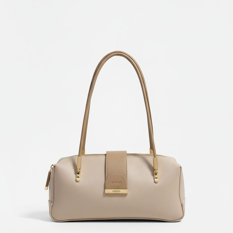 Discover the perfect balance of modern minimalism and everyday elegance with this exquisite beige shoulder bag. Crafted from high-quality smooth leather, this bag offers a sleek finish that is durable and soft to the touch. Its clean, rectangular silhouette is accentuated by a central magnetic tab closure with a sophisticated gold-tone metal accent, adding a refined architectural touch.