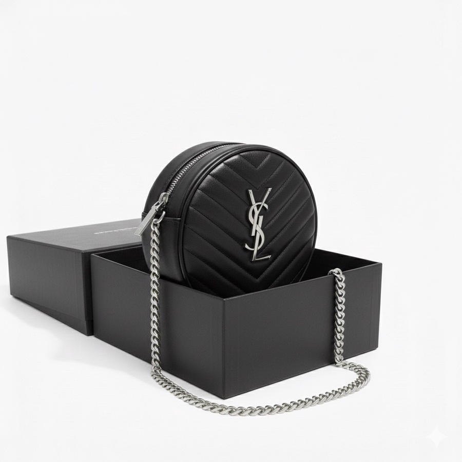 Meet your new favorite accessory. This stunning round bag combines luxury aesthetics with practical design. Featuring signature quilted stitching and bold metal hardware, it’s the ultimate statement piece.