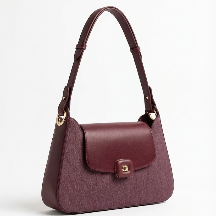 Discover the perfect blend of sophistication and modern design with our Bordeaux Chic Shoulder Bag. Crafted for the fashion-forward individual, this bag features a unique mixed-media design, combining a smooth, premium leather-finish flap with a rich, textured fabric body in a deep, elegant wine hue.