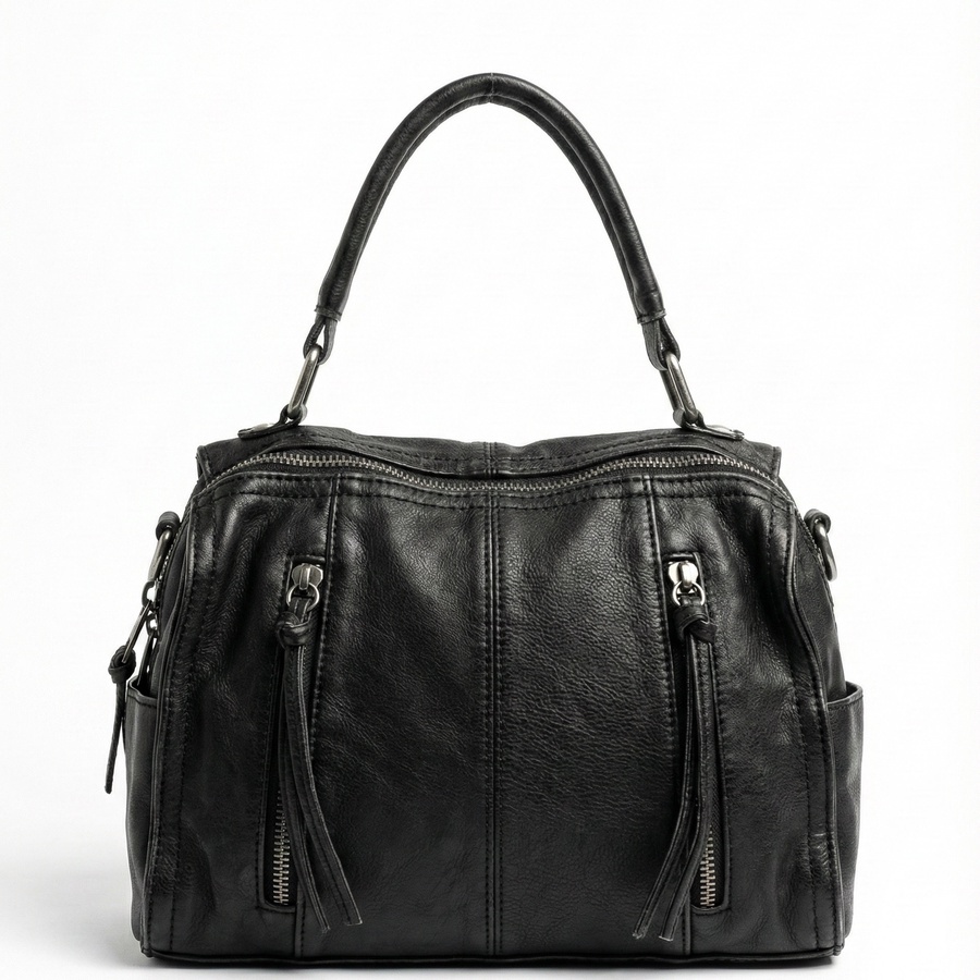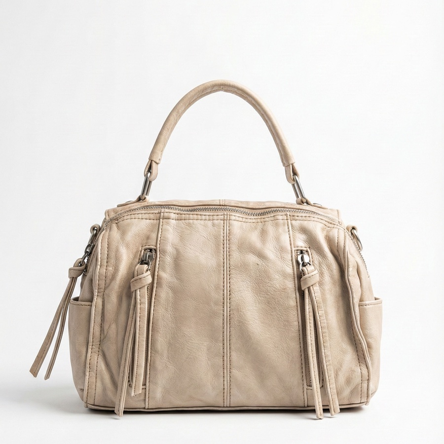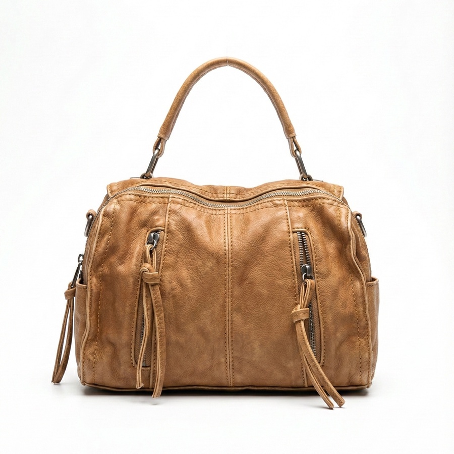 Elevate your everyday style with this ultra-soft, slouchy handbag featuring a chic vintage-washed finish. The design combines boho charm with modern utility, showcasing dual front zippers with stylish long tassels and practical side pockets. With a spacious interior and comfortable handle, it is the perfect accessory for effortless daily wear.