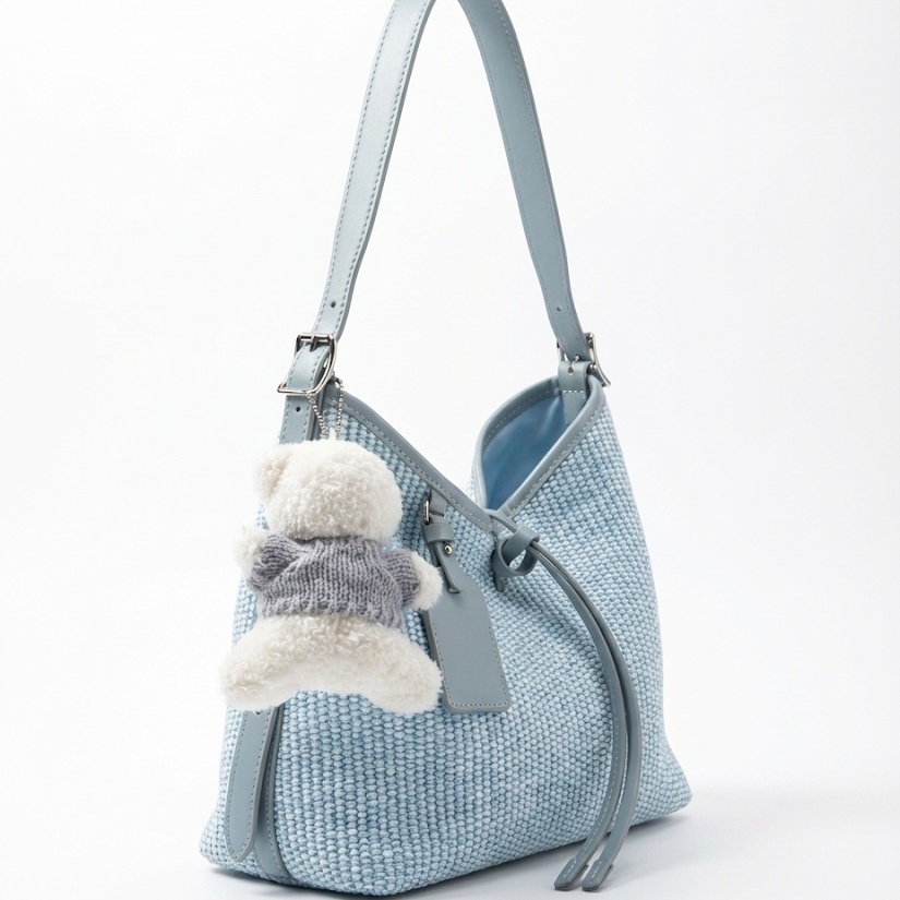 Add a touch of textured charm to your daily look with this beautiful light blue woven shoulder bag. Crafted with a durable, intricate weave in soft sky blue and white tones, this bag offers a relaxed yet stylish silhouette perfect for casual outings or sunny days.